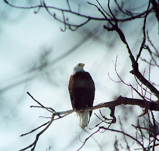 A BALD EAGLE OVERLOOKS THE MISSISSIPPI RIVER ON THE GREAT