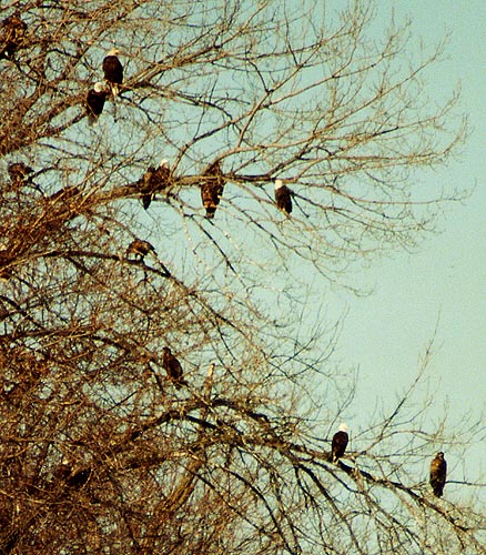 BALD EAGLES RESTING AND WATCHING THE POOLS BEFORE