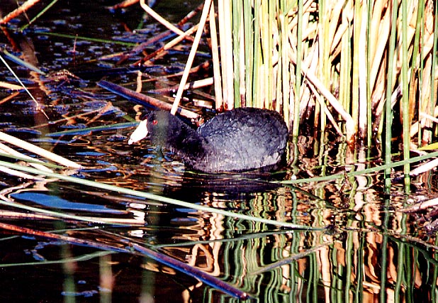 AN AMERICAN COOT AT FLOATING ISLAND LAKE BETWEEN MAMMOTH AND TOWER JUNCTION