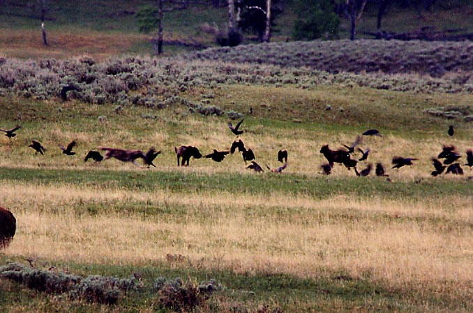 "WOLVES OUT, RAVENS IN" AT THIS CARCASS SITE IN LAMAR VALLEY BETWEEN THE CONFLUENCE AND THE YELLOWSTONE INSTITUTE