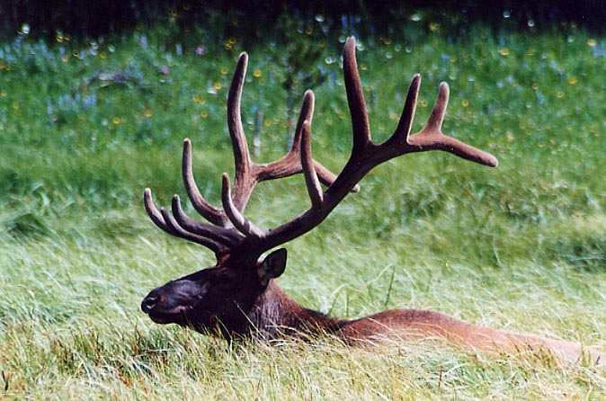 A BULL ELK FINDS TRANQUILLITY IN THIS "SEA OF GRASS" BETWEEN MAMMOTH AND MADISON