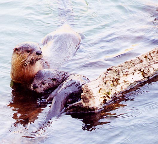 FEMALE RIVER OTTER WITH PUP AT TROUT LAKE BETWEEN SODA BUTTE FORMATION AND PEBBLE CREEK CAMPGROUND