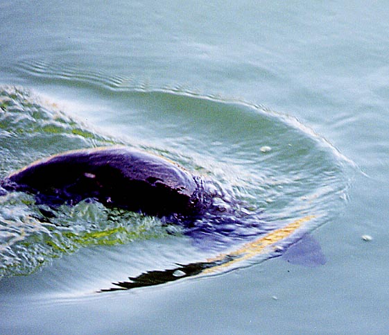 ADULT FEMALE RIVER OTTER DIVES BENEATH THE CLEAR WATERS OF TROUT LAKE BETWEEN THE SODA BUTTE FORMATION AND PEBBLE CREEK CAMPGROUND