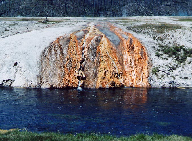 COLORFUL TERRACES ALONG THE FIREHOLE RIVER BETWEEN THE UPPER GEYSER BASIN AND FIREHOLE CANYON DRIVE